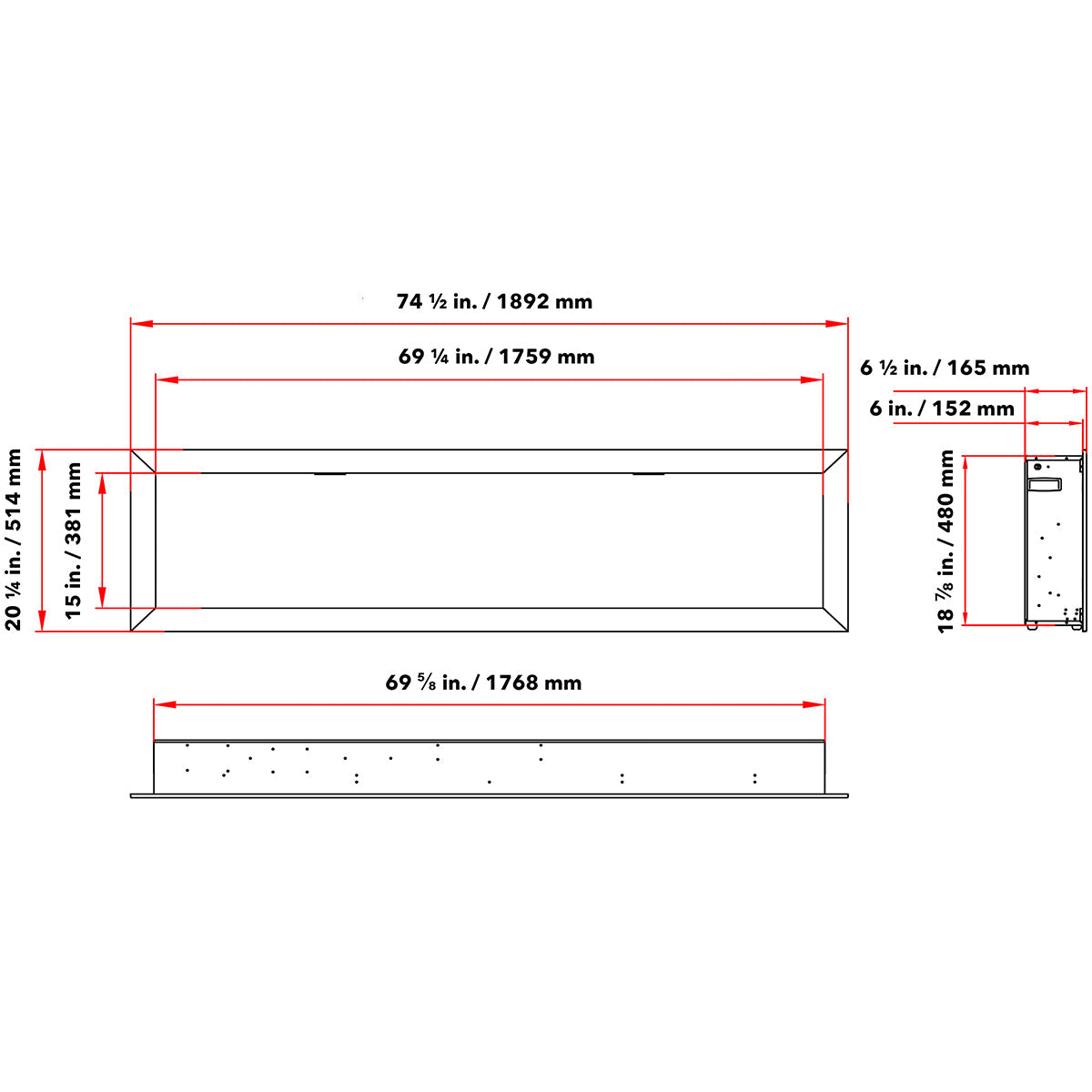 The fireplace outputs heat from the front, there it can give heat even when built into the wall. Features include: